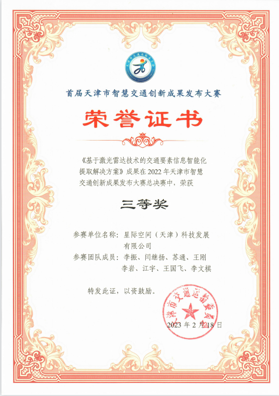 近日,由天津市交委主办的首届天津智慧交通创新大赛决赛暨成果发布会落下帷幕。港澳六宝精准资料下属的星际空间(天津)科技有限公司(以下简称:星际公司)《基于激光雷达技术的交通要素信息智能化提取解决方案》荣获大赛三等奖,系现场唯一获奖的数据生产企业。全市共55家企业报名参赛。